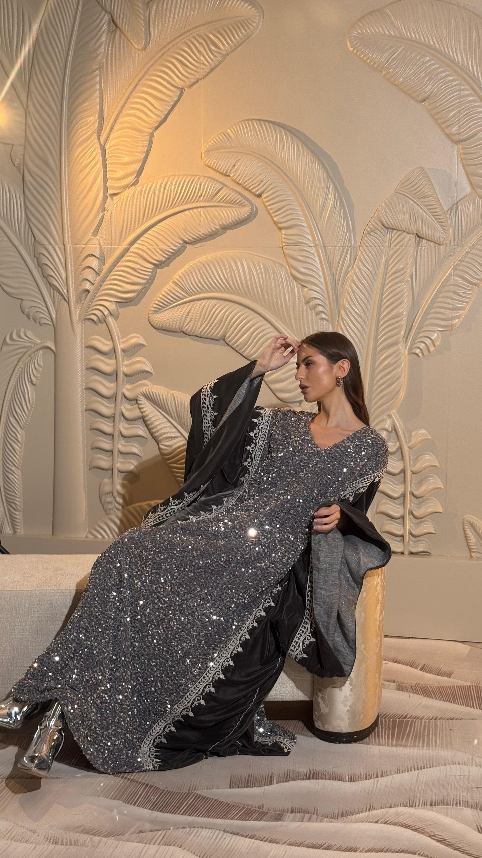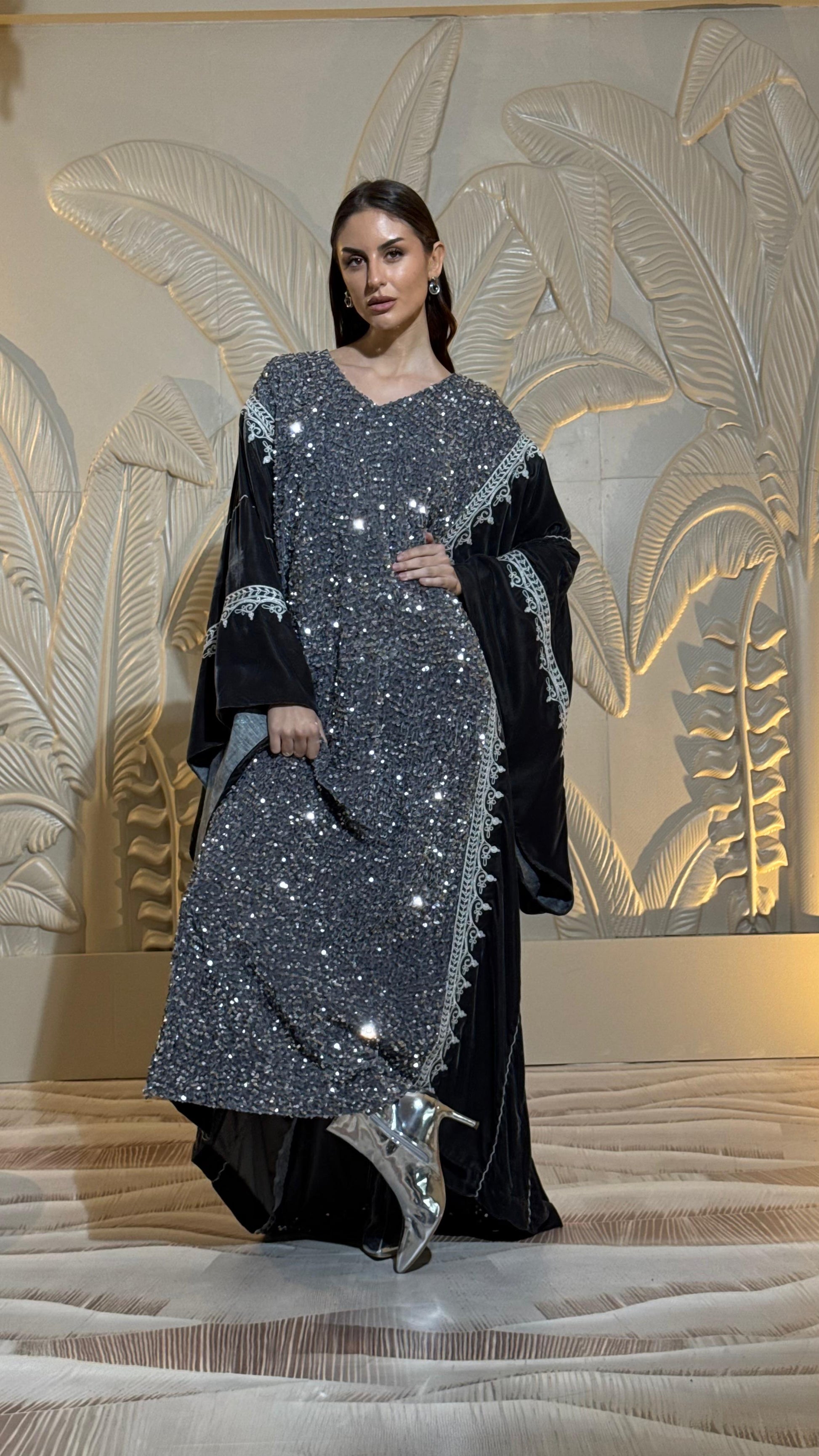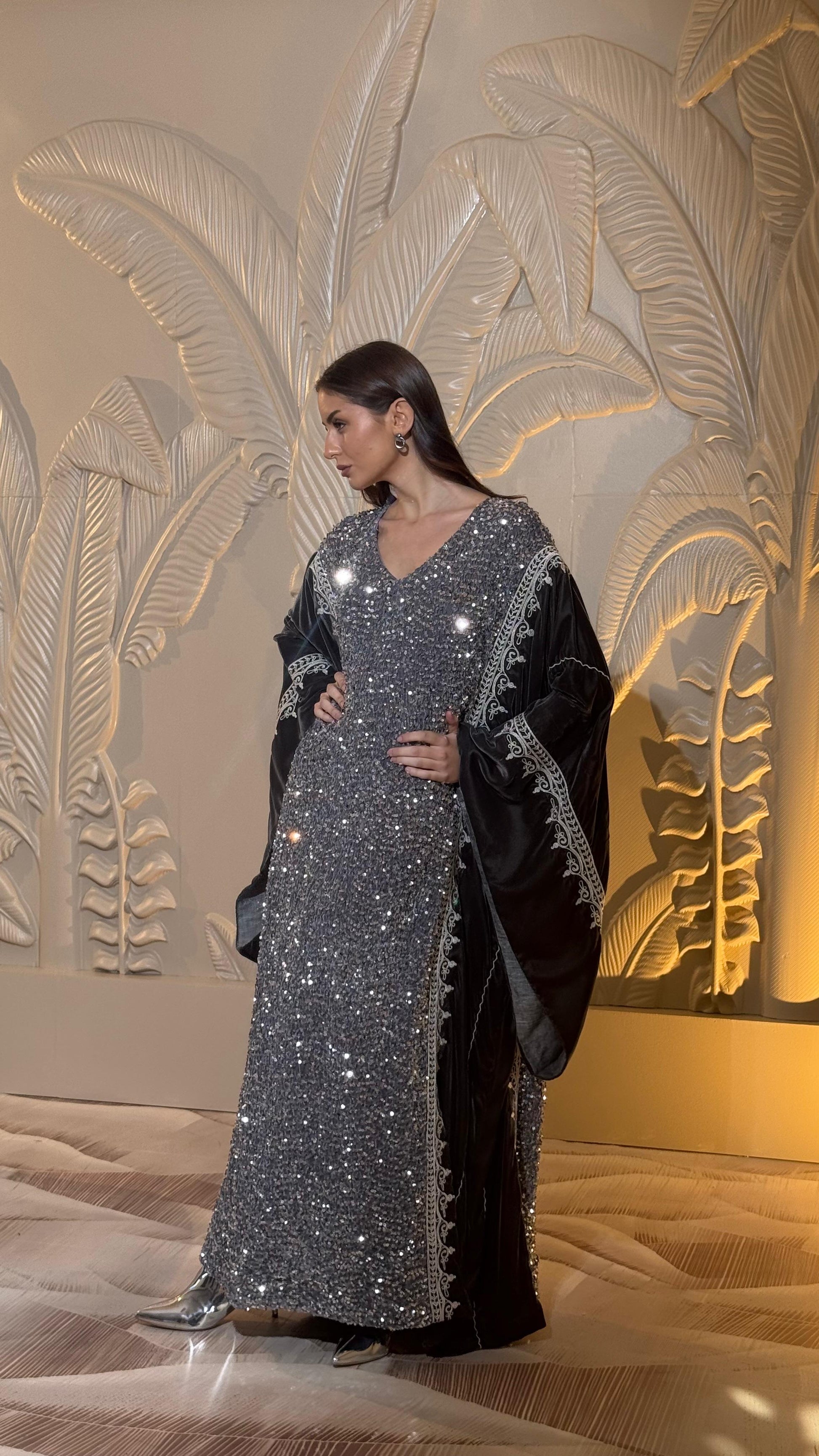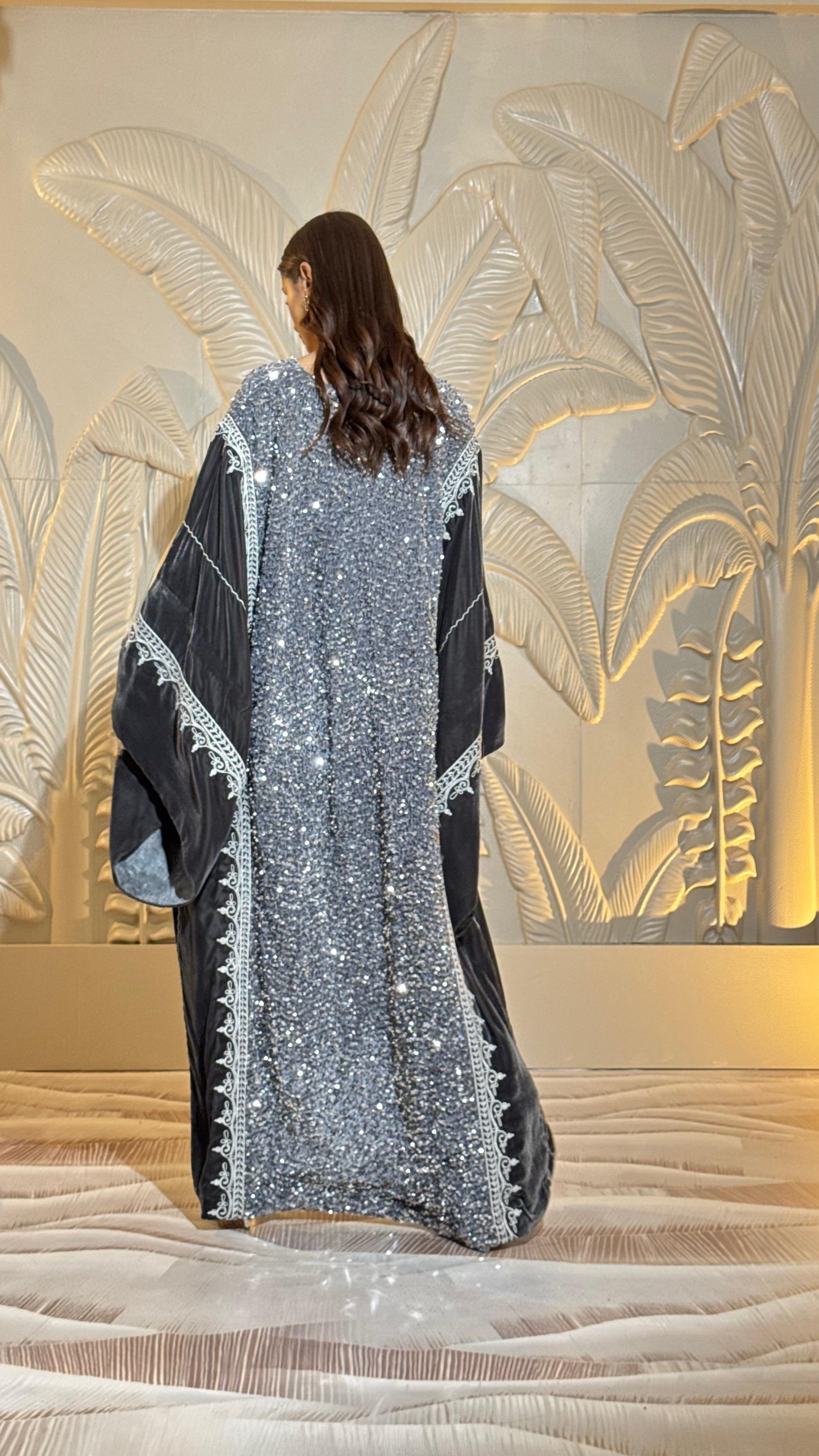 sequin and velvet embroidered dress.